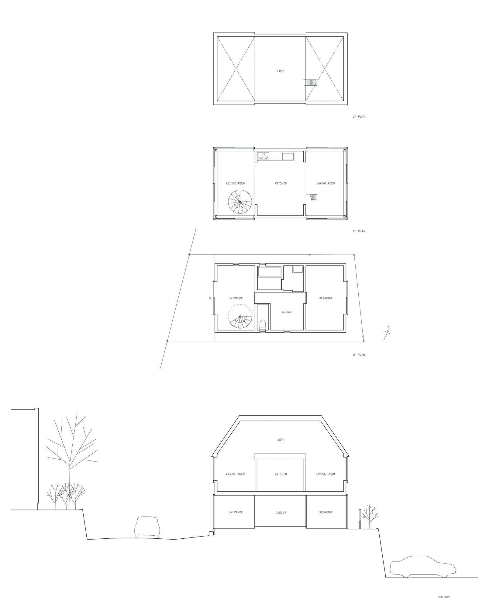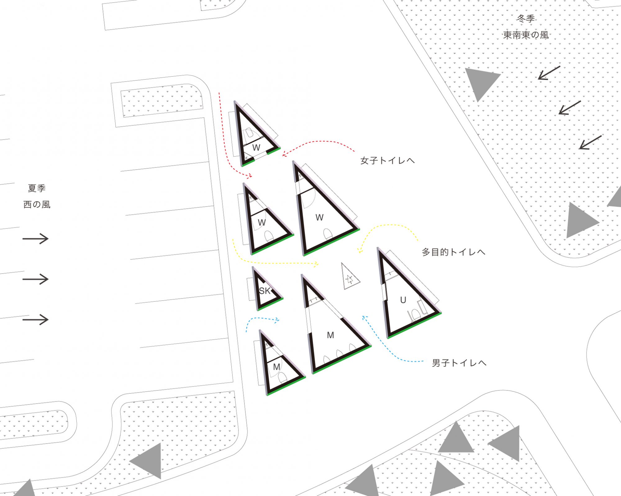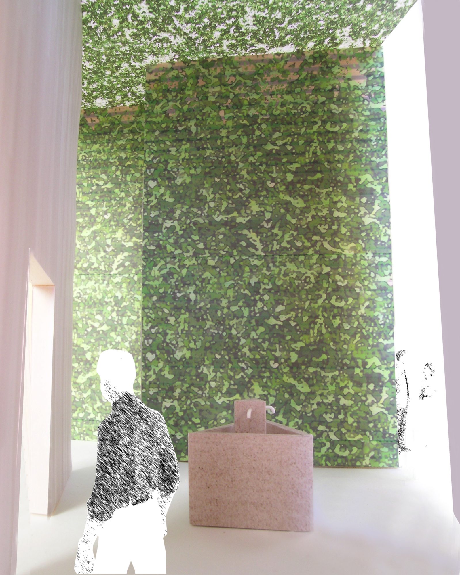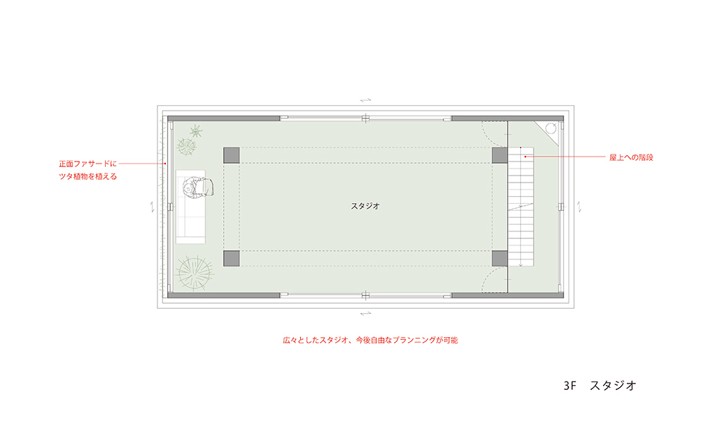 青森県立美術館で開催された『化け物展』の会場構成デザインである。青森県立美術館は、レンガを積んで白く塗った外壁、白と茶が目まぐるしく展開する展示室をもつ美術館である。手がかりとしたのは、青森県美を「化かす」こと。外壁に使用しているレンガを3倍の大きさのダンボールに化かし、それらをさまざまに組み上げることで間仕切り壁や展示台、結界などをつくっている。さらに、白と茶というハイコントラストな展示室に呼応し、かつその特徴を増幅するように、ダンボールレンガを白と茶で3面ずつ塗り分けをした。お化け屋敷の空間をイメージして、一筆書きの動線と作家ごとに小分けにした空間の連続により化け物(作品)が突如現れるかのような構成としている。