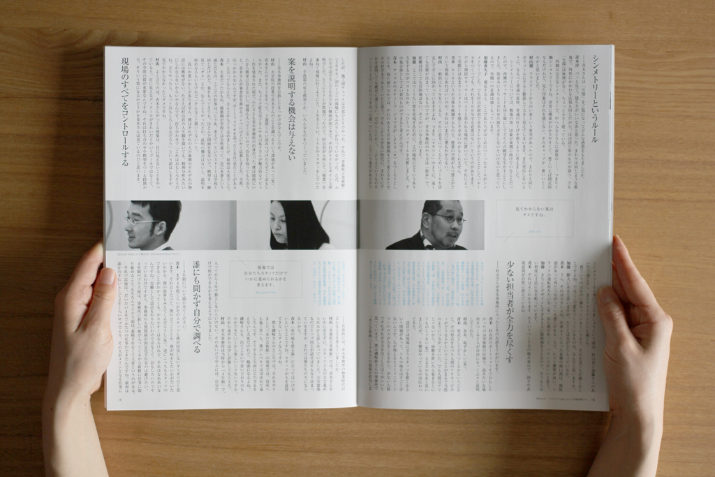 TOTO通信2014年春号に記事が掲載されました。「師と弟子」という特集号で、青木淳さんとムトカの村山が取り上げられています。青木さん× 村山×加藤の座談会の記事と共に、N邸の取材文と最近の写真も掲載されています。機会があればぜひご覧ください。