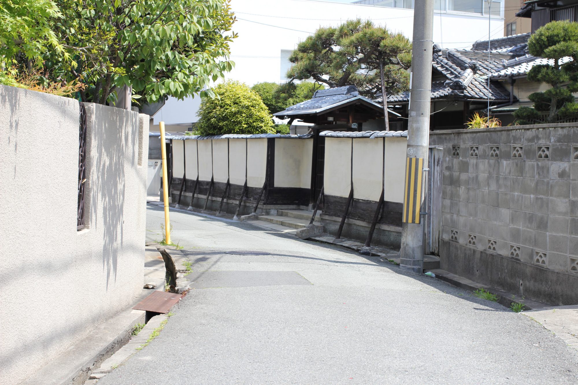 大阪で設計中の住宅H邸の敷地周辺サーベイをしました。敷地から半径500mをひたすら歩き印象に残ったものをスナップしました。敷地周辺は小さな城があった小規模な城下町であったため、道を鍵の手に曲げて迷路のようにした追廻し筋とも呼ばれる道路の名残が多数ありました。特に目に付くのは立派な塀。そして、その向こうに庭、母屋、蔵がある屋敷がひっそりと建っています。しかしここも例にもれず、大きな屋敷が壊されて分譲の建売住宅が並ぶ開発が所々で見られるのが残念です。今回の住宅は屋敷のように大きな敷地ではないですが、この場所ならではの、塀と母屋と緑の凛とした関係を継承した建築とする、という目標が見えてきました。