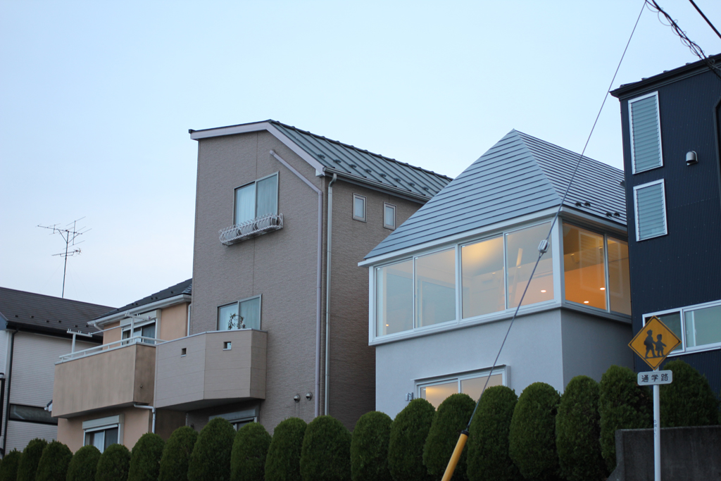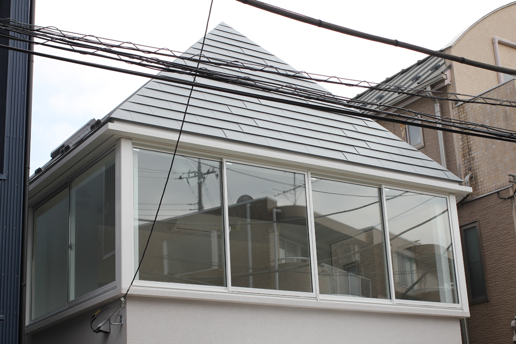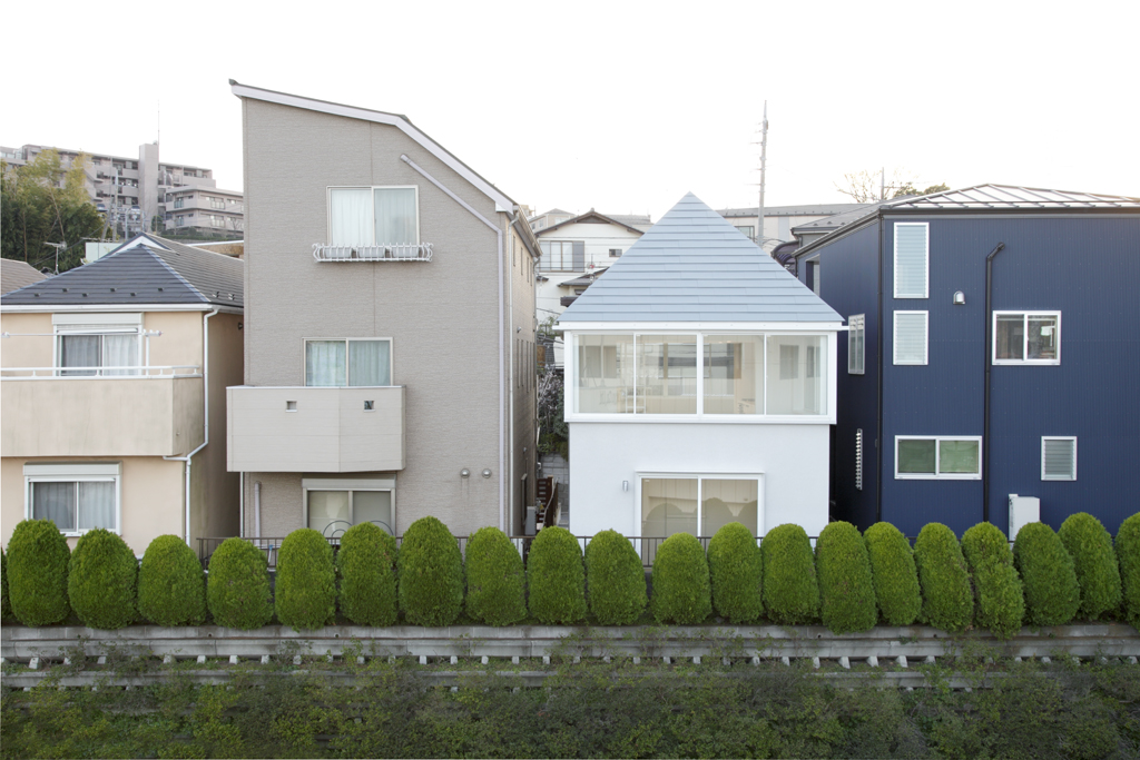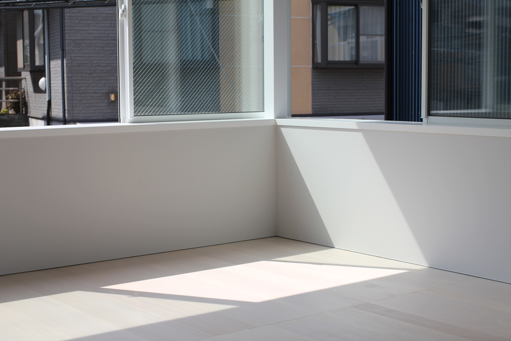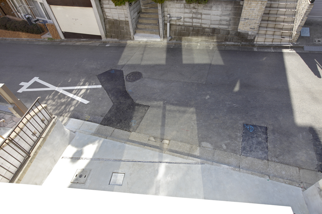写真家の川村麻純さんにN邸の竣工写真を撮っていただきました。建築写真を専門としている写真家とは異なり、川村さん独自の視点が見られます。光の反射により家のシルエットが道路に映し出されている姿や裏の駐車場におちる家型の影など、この家とまちとの関係が写し出されています。