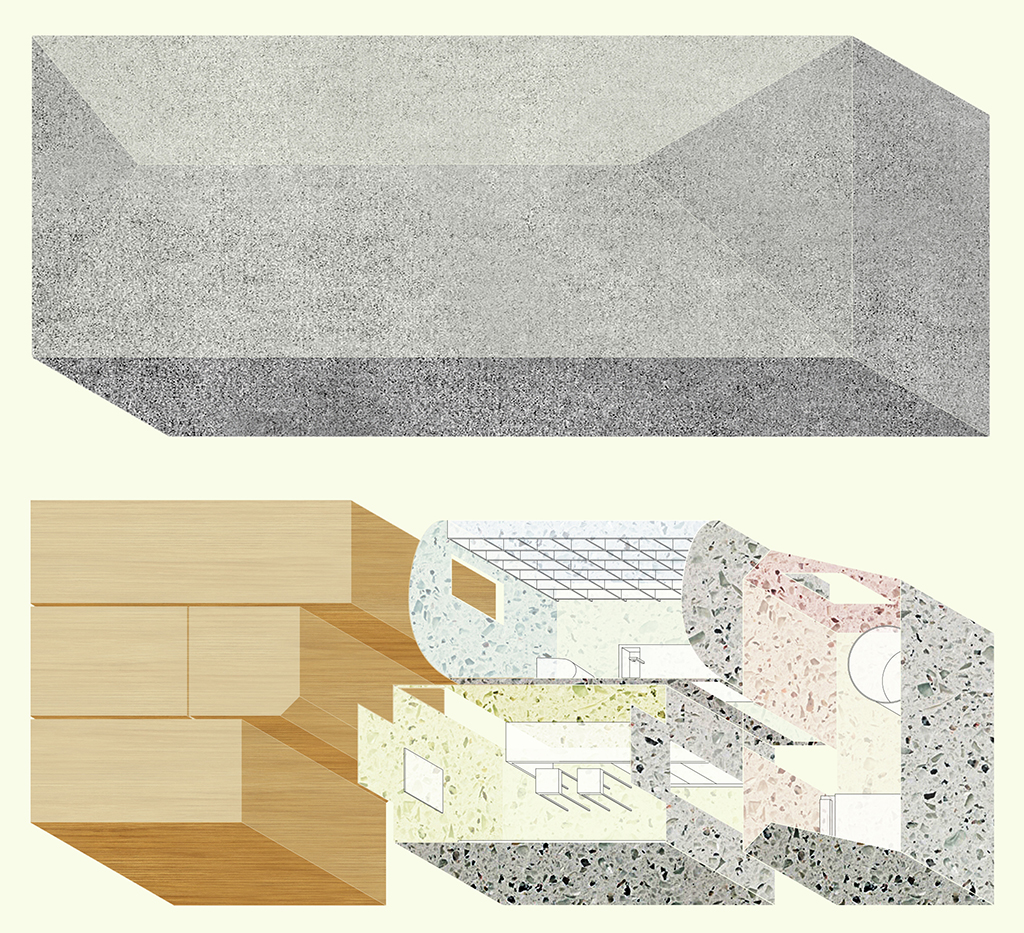 浅子佳英氏の自邸「GRAY」の1階の手付かずの場所にインストールする、居室ともユーティリティとも呼べない絶妙な大きさである7.5帖のキッチン、トイレ、バスルームの3つの部屋からなる住宅の計画である。 ユーティリティとしてはかなり大きな3つのヴォリュームは、住宅としての機能を充実させるだけでなく、二世帯住宅や独立した賃貸住宅としても利用できる多層的な状況をつくりだす。