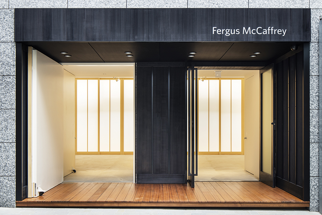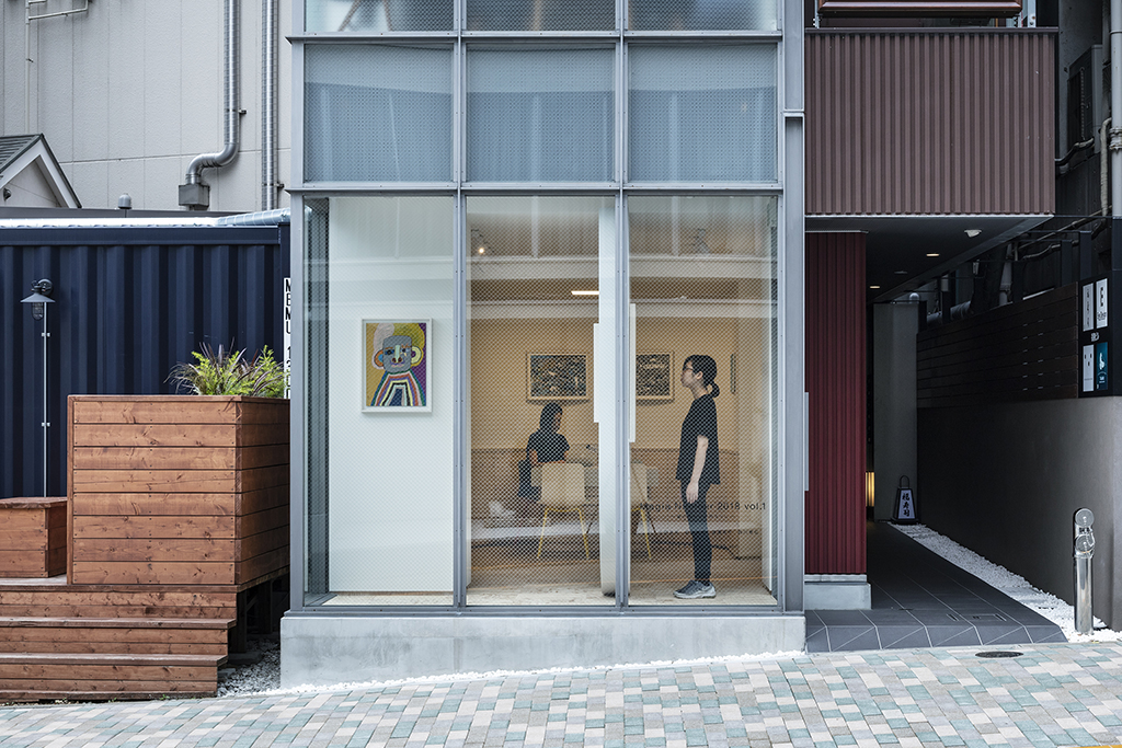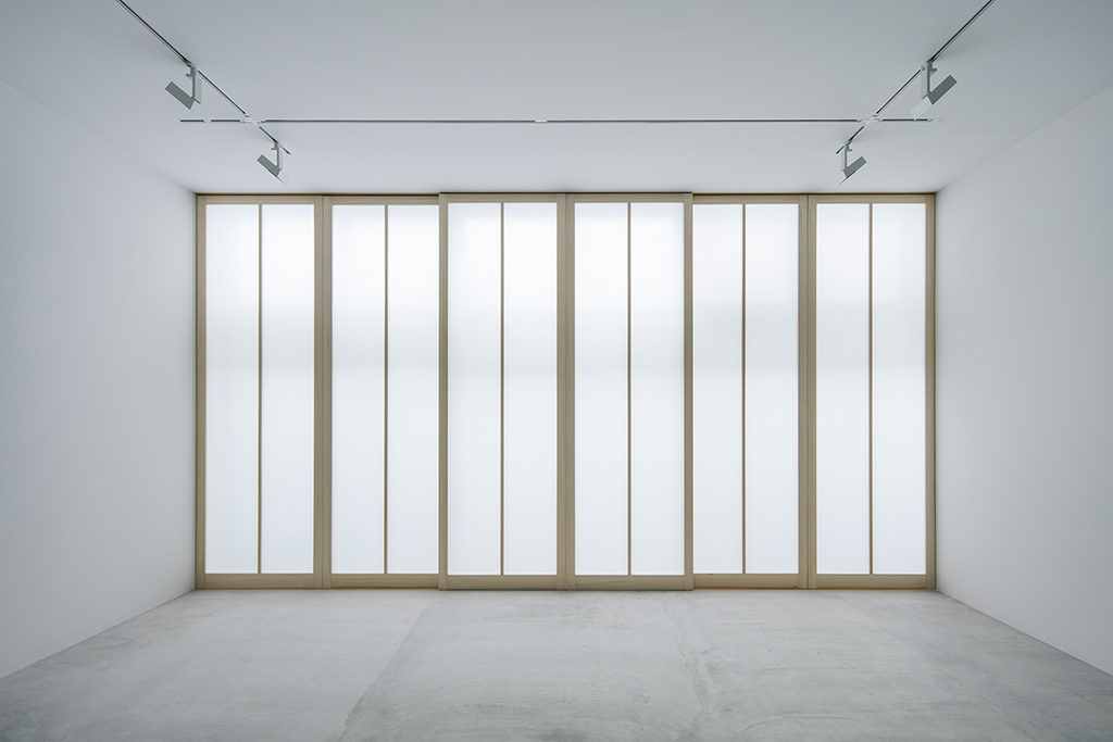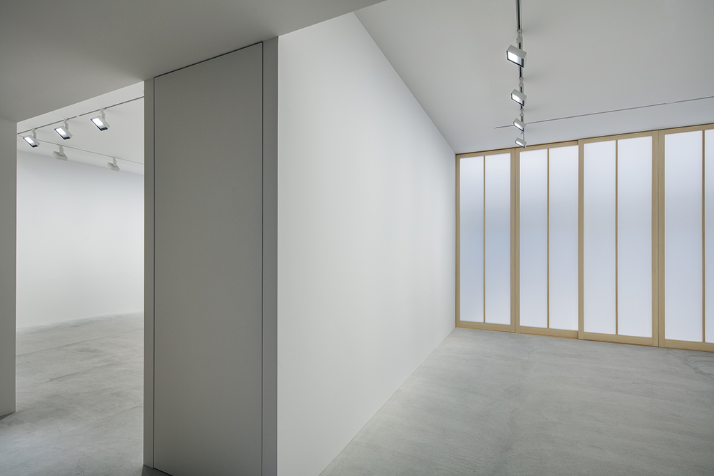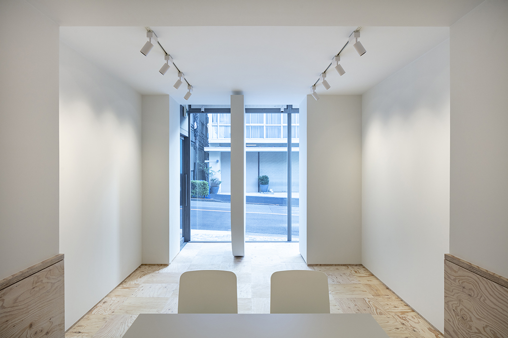 ニューヨークに拠点を置く現代美術ギャラリーの東京スペースのデザインである。具体やもの派といった日本戦後美術を取り扱い、多くの外国人コレクターが訪れるギャラリーに「日本らしさ」を感じる空間を提案した。 東京・表参道交差点のすぐ近く、青山通りから小さな路地に入る。ギャラリーへのアプローチはもうここから始まっている。飲食店が立ち並ぶ路地の一番奥にファサードを構える。数奇屋建築を多く手掛ける京都の中村外二工務店が施工した、墨色の浮造杉板張り、漆黒の縦胴縁で仕上げられた黒いファサードは、細い路地の奥で一際異彩を放つ。エントランスドアを開くと、柔らかな光に包まれた明るい展示室が現れる。正面の壁一面は天井までの高さの障子に覆われ、自然光が降り注ぐ。二つ設けられた展示室は、シンメトリーに配置され、鑑賞者は同じ二つの空間を行き来して、作品を鑑賞する。「続き間」から着想を得たその空間は、いつまでも完結しない。自然光の心地よさと相まって、美術鑑賞の悦びを享受できる空間である。コマーシャルギャラリーにとって重要な場所であるビューイングルームは、小さいながらも特別感のある「茶室」を思わせる空間になっている。バックスペースは、収納、キッチン、トイレなどの機能を壁面に納めた「通り庭」のような通路を抜けて、突き当たりにオフィスを配している。 表参道という狭い文脈ではなく、日本という文脈、あるいは、アジアという文脈の中で、その外から見て、ぜひ訪れたいと思えるギャラリーとはどのようなものか?という問いの答えとして、各所に日本建築の空間の質を定着させ、日本らしい居心地の良さと贅沢さを実現している。
