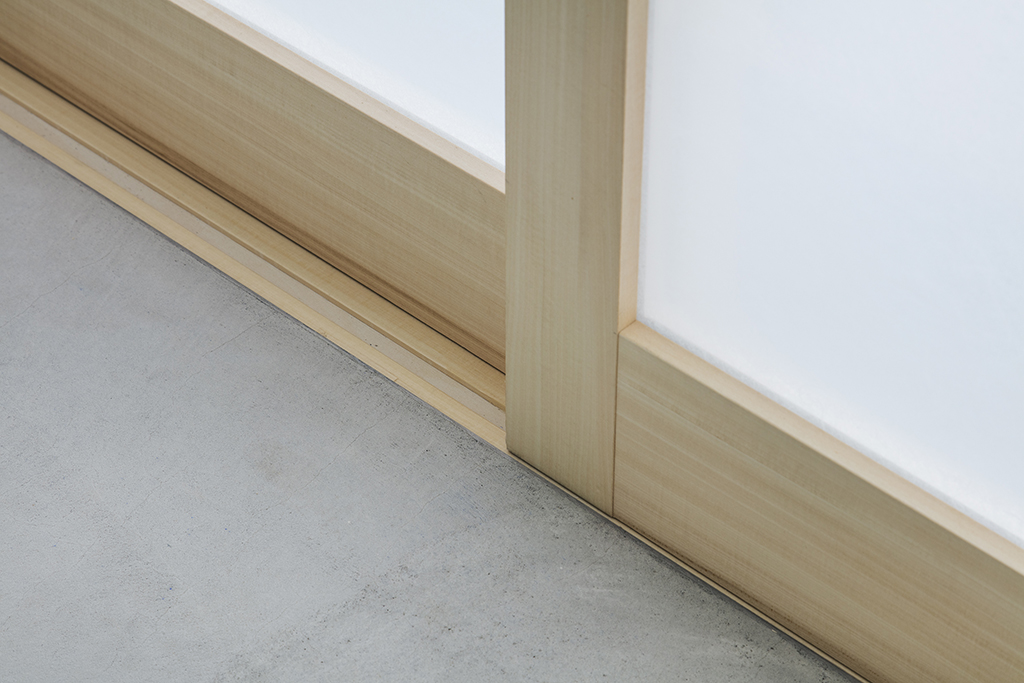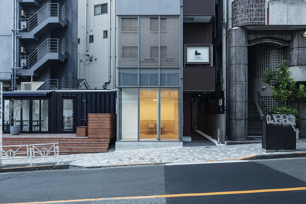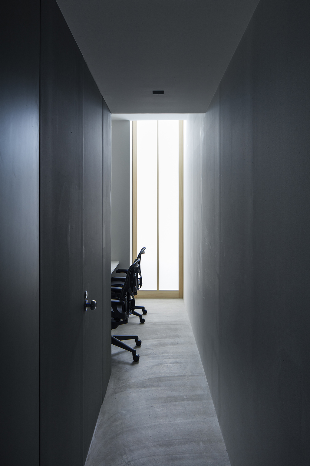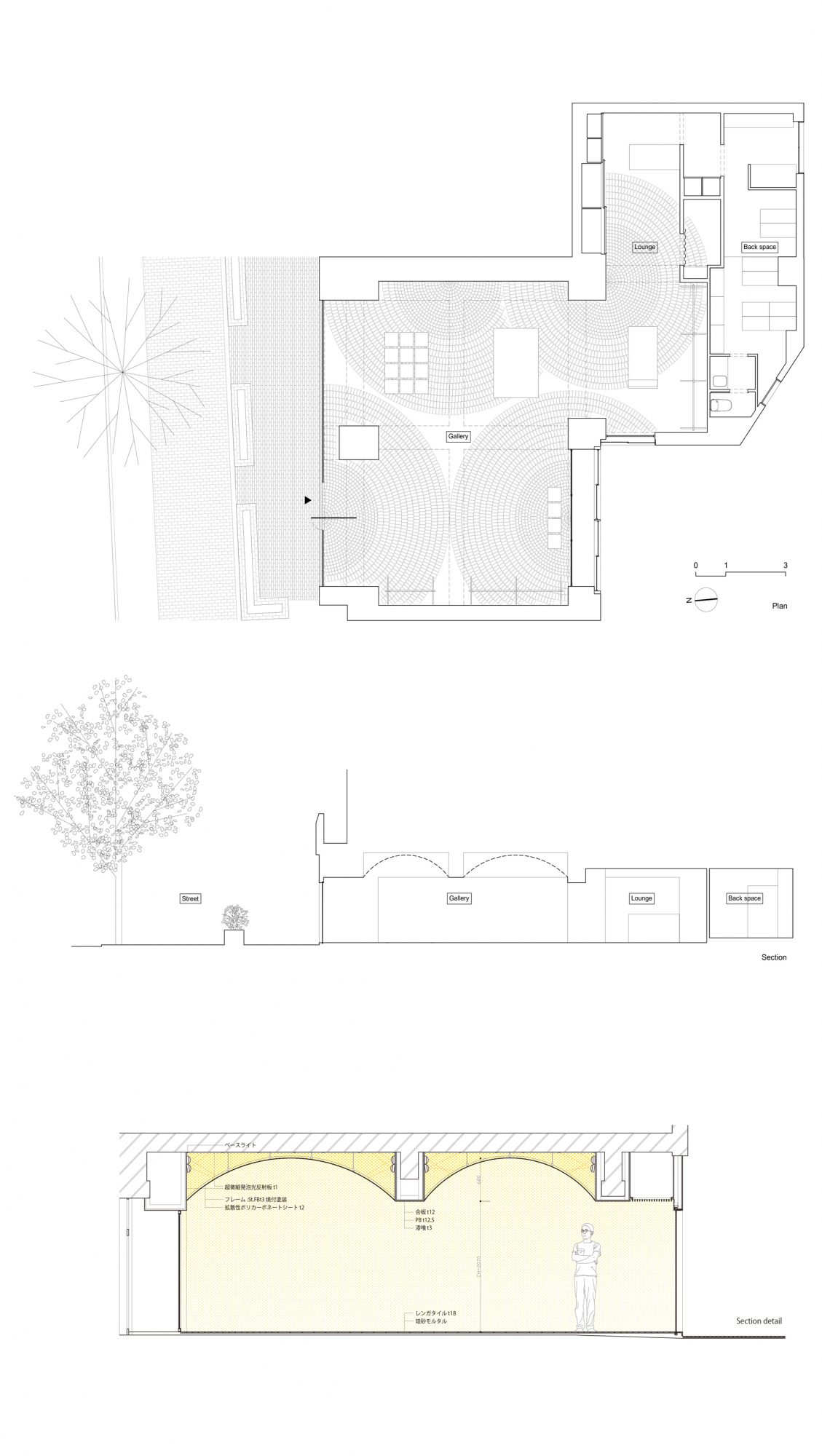 ニューヨークに拠点を置く現代美術ギャラリーの東京スペースのデザインである。具体やもの派といった日本戦後美術を取り扱い、多くの外国人コレクターが訪れるギャラリーに「日本らしさ」を感じる空間を提案した。 東京・表参道交差点のすぐ近く、青山通りから小さな路地に入る。ギャラリーへのアプローチはもうここから始まっている。飲食店が立ち並ぶ路地の一番奥にファサードを構える。数奇屋建築を多く手掛ける京都の中村外二工務店が施工した、墨色の浮造杉板張り、漆黒の縦胴縁で仕上げられた黒いファサードは、細い路地の奥で一際異彩を放つ。エントランスドアを開くと、柔らかな光に包まれた明るい展示室が現れる。正面の壁一面は天井までの高さの障子に覆われ、自然光が降り注ぐ。二つ設けられた展示室は、シンメトリーに配置され、鑑賞者は同じ二つの空間を行き来して、作品を鑑賞する。「続き間」から着想を得たその空間は、いつまでも完結しない。自然光の心地よさと相まって、美術鑑賞の悦びを享受できる空間である。コマーシャルギャラリーにとって重要な場所であるビューイングルームは、小さいながらも特別感のある「茶室」を思わせる空間になっている。バックスペースは、収納、キッチン、トイレなどの機能を壁面に納めた「通り庭」のような通路を抜けて、突き当たりにオフィスを配している。 表参道という狭い文脈ではなく、日本という文脈、あるいは、アジアという文脈の中で、その外から見て、ぜひ訪れたいと思えるギャラリーとはどのようなものか?という問いの答えとして、各所に日本建築の空間の質を定着させ、日本らしい居心地の良さと贅沢さを実現している。