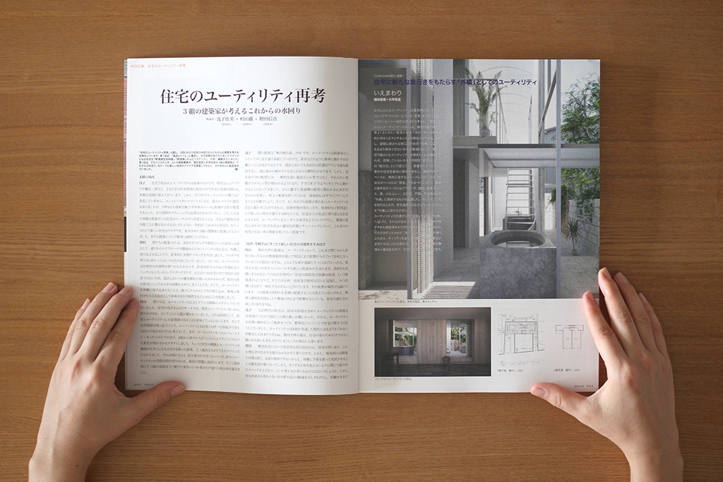 村山が登壇した座談会「住宅のユーティリティ再考-3組の建築家が考えるこれからの水回り」の記事が新建築住宅特集2017年1月号に掲載されました。このイベントは、同誌2016年8月号・9月号の特別記事の連動企画で、2016年11月26日に青山ハウスで行われました。記事には品川雅俊氏(青木淳建築計画事務所)による批評『水回りと向き合う』が掲載され、当日の議論の様子が記されています。